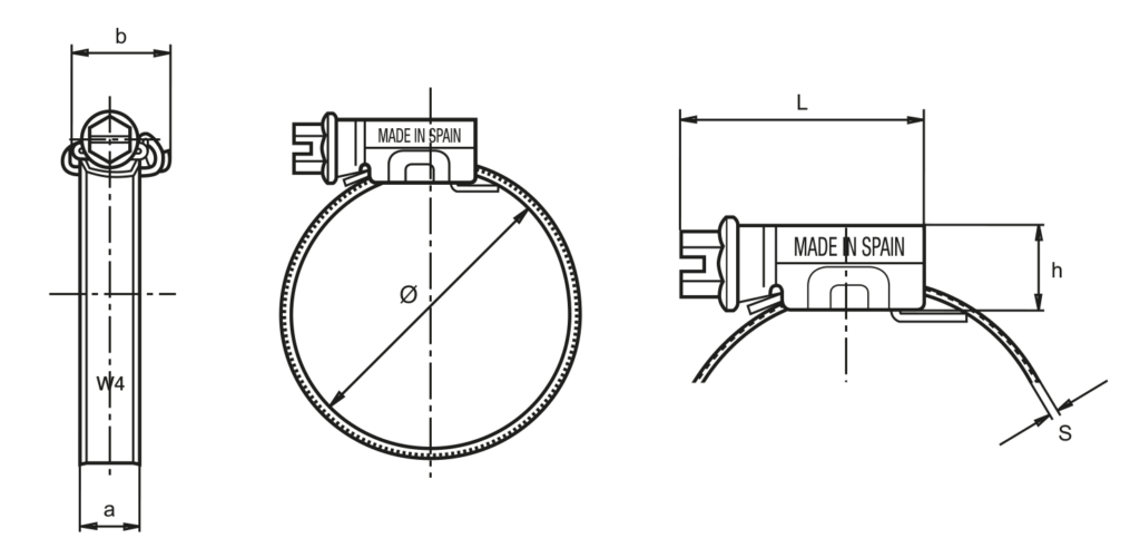 | Material | • Cinta y Cabezal: Acero Inoxidable X5CrNi1810 (AISI-304) • Tornillo: Acero Inoxidable (AISI-304) |